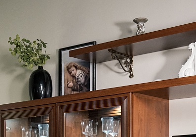 Полки для гостиной могут выполнять самые разнообразным функциям: быть местом для хранения одежды, книг или посуды, служить для демонстрации различных памятных подарков, элементов декора и сувениров. Функциональная нагрузка обуславливается внешним видом полок в гостиную: открытого типа, с глухим фасадом, стеклянными или зеркальными вставками.