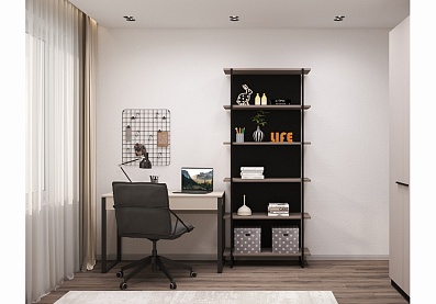 Стеллаж Милагро с полками Кашемир серый, Черный графит, Черный
