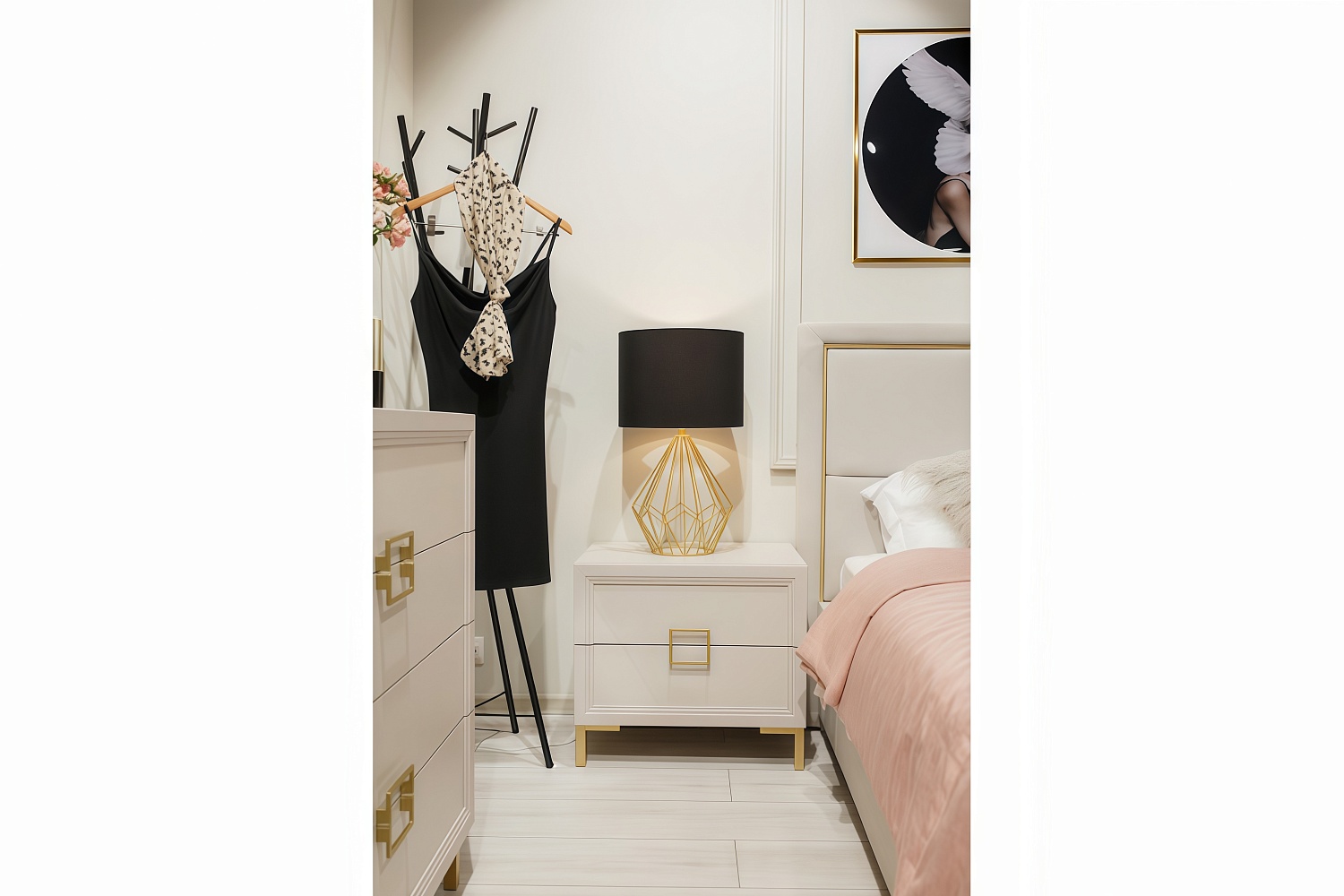 - Лицевая фурнитура — ручки и опоры цвета «золото»;
